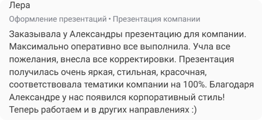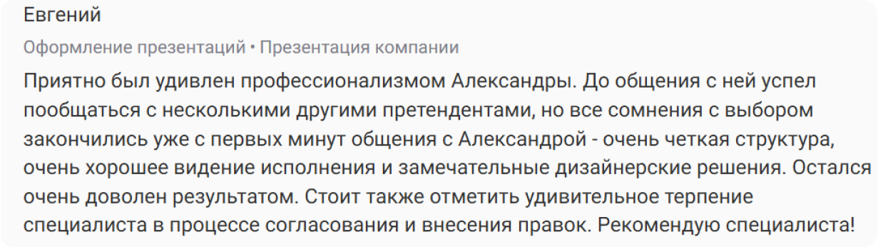 Я помогаю организовать информацию так, чтобы она была легко воспринимаема, а Ваши идеи — максимально убедительными.